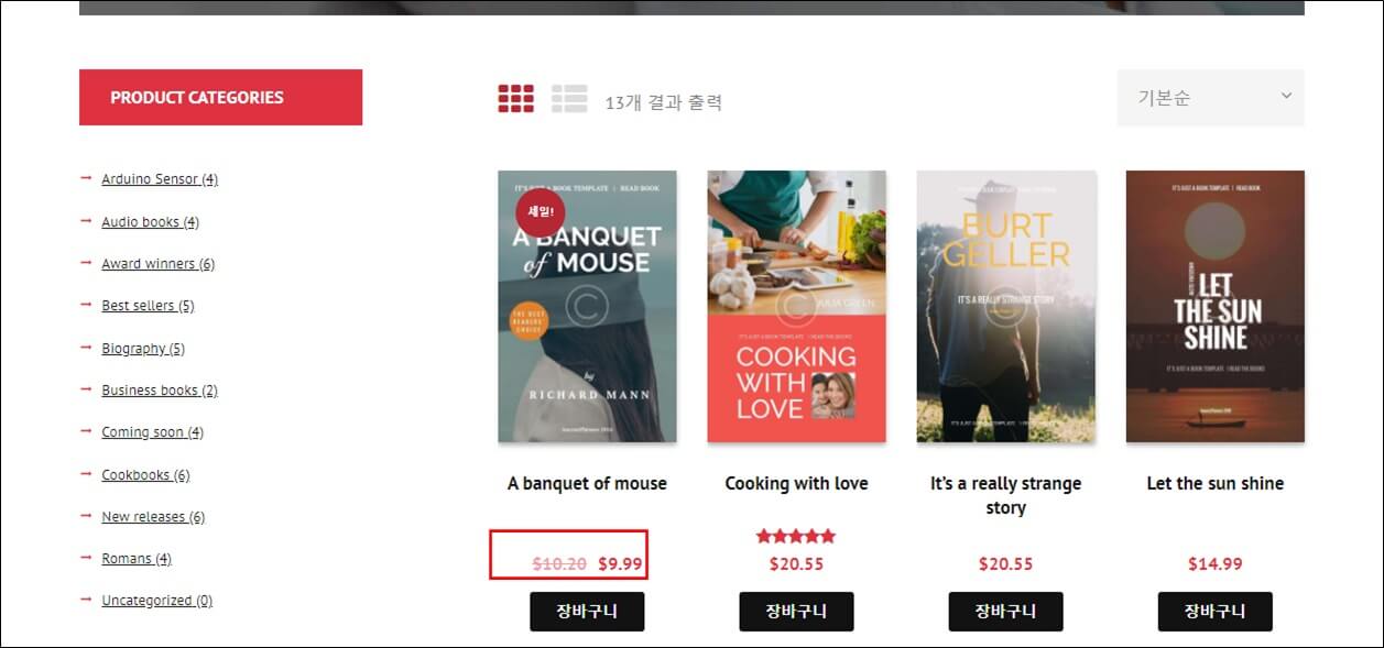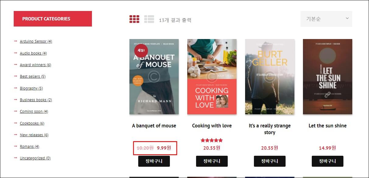 functions.php 에 코드가 정상적으로 적용되었다면 다음과 같이 한국 통화 "원"으로 표시됩니다.