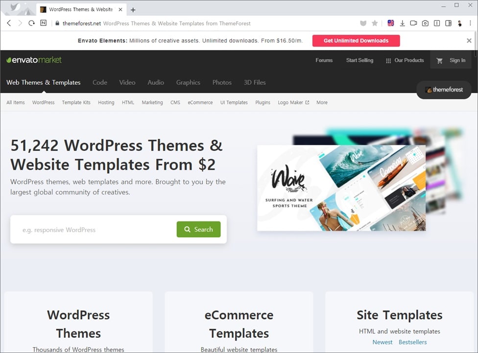 테마 포레스트(themforest) 사이트