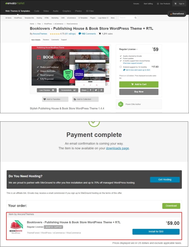 59달러에 Booklovers 테마를 구입합니다.
