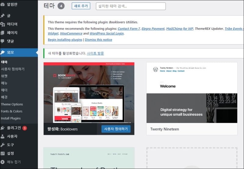Booklovers 유료 테마 설치하기