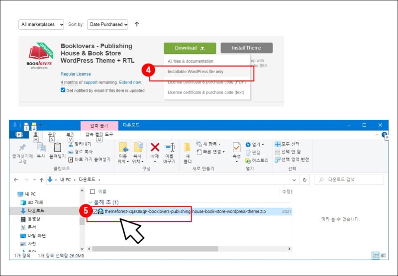 (4) 테마 포레스 사이트에서 구입한 테마를 다운로드합니다.