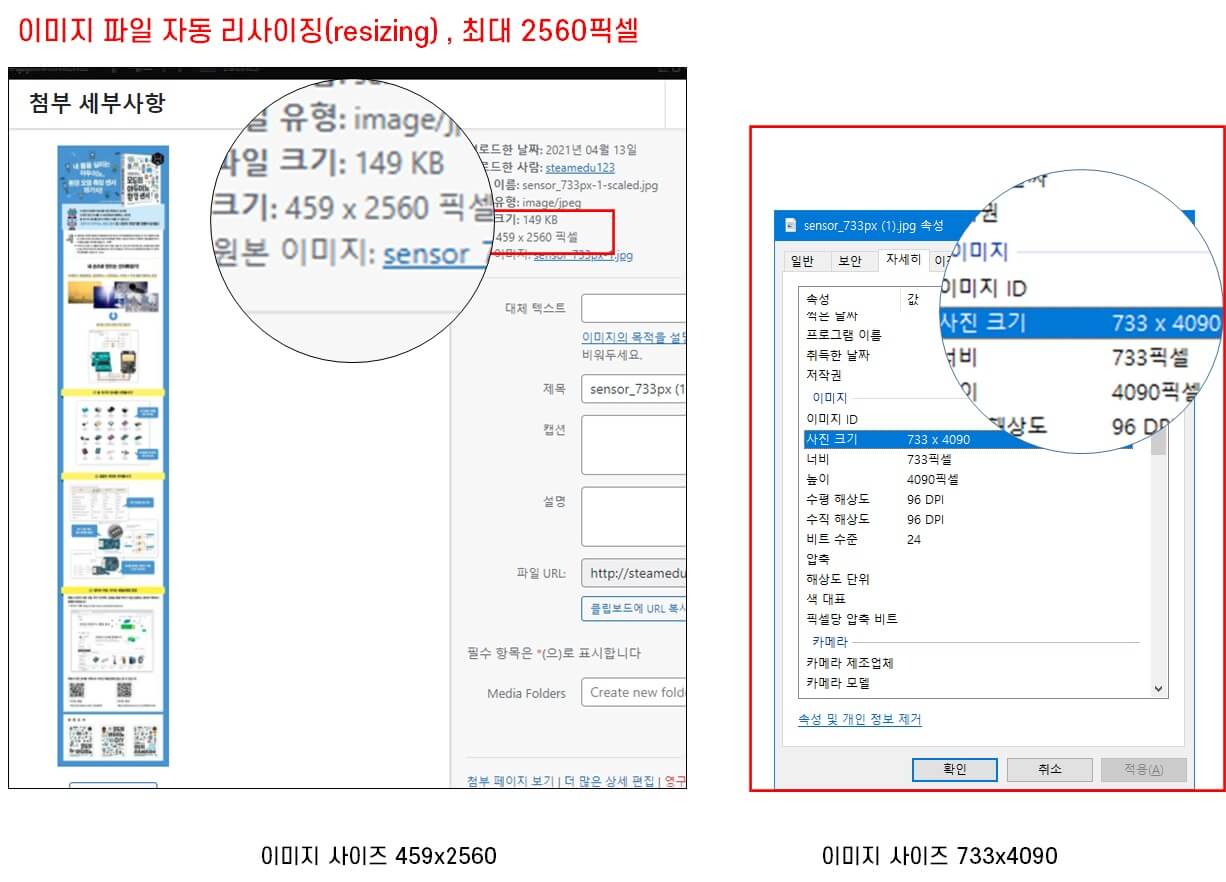 워드프레스 5.3 이후부터 이미지가 최대 2560픽셀로 자동 리사이징 됩니다. 일반 이미지들을 사용하는 데는 문제가 없습니다. 하지만 세로로 긴 이미지의 경우 리사이징이 되는 문제점이 있습니다.