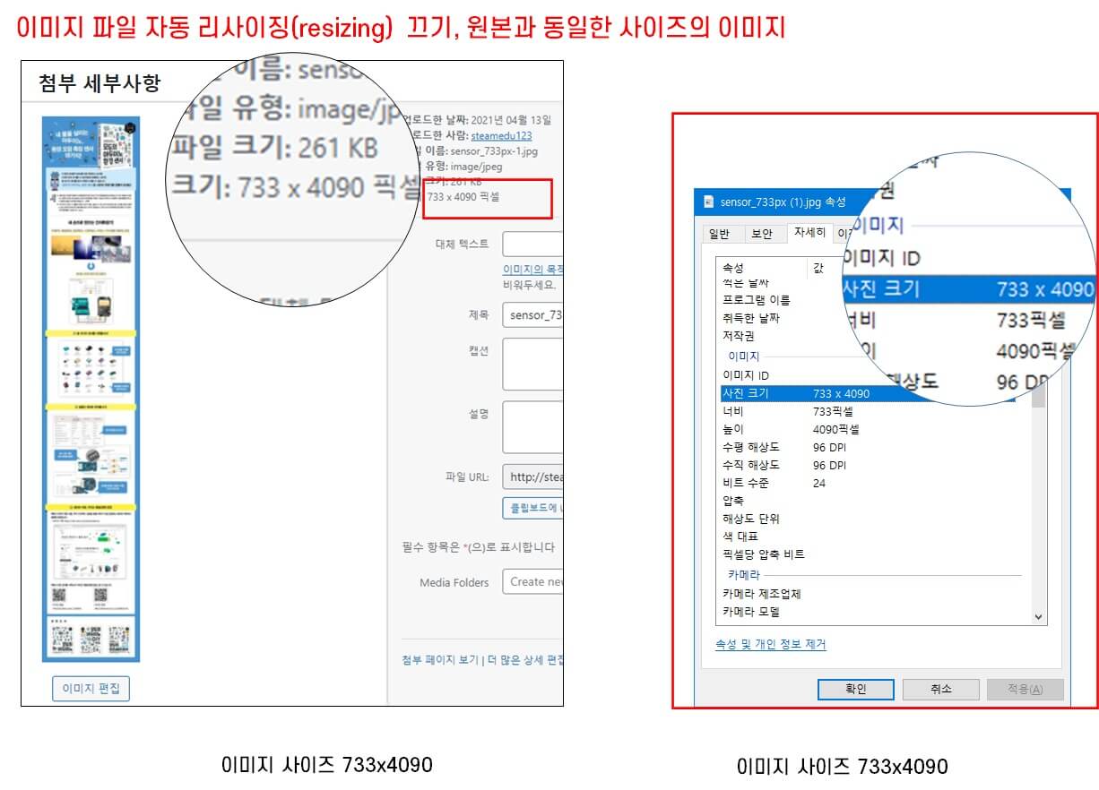 세로로 긴 이미지를 사용하기 위해서는 이미지 사이즈 자동 최적화를 사용하지 않아야 합니다. functions.php에 코드를 넣는 방법이 있지만, disbale big image Threshold 플러그인을 사용할 수 있습니다.
