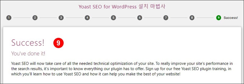 8단계 Continue Learning 은 Yoast 사로 부터 소식지를 구독할 수 있도록 이메일을 입력할 수 있습니다.