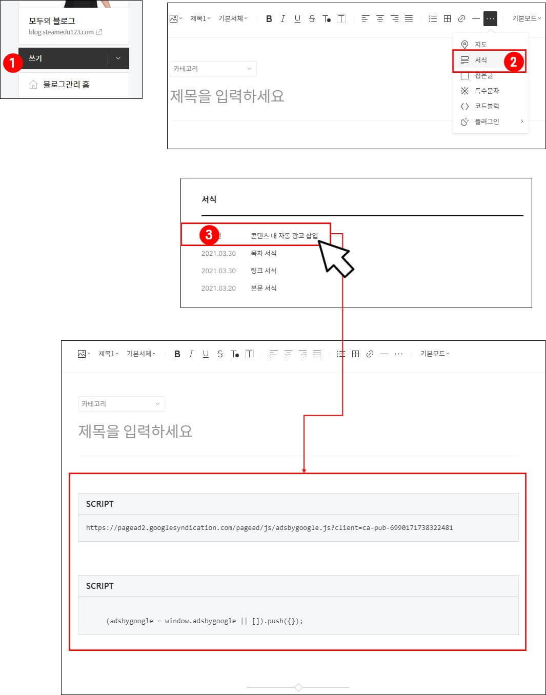 (3) [콘텐츠 내 자동 광고 삽입] 서식을 선택합니다.