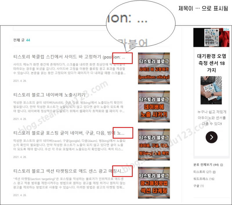 티스토리 블로그 긴 글제목 전체 표시하는 방법(북클럽 스킨)