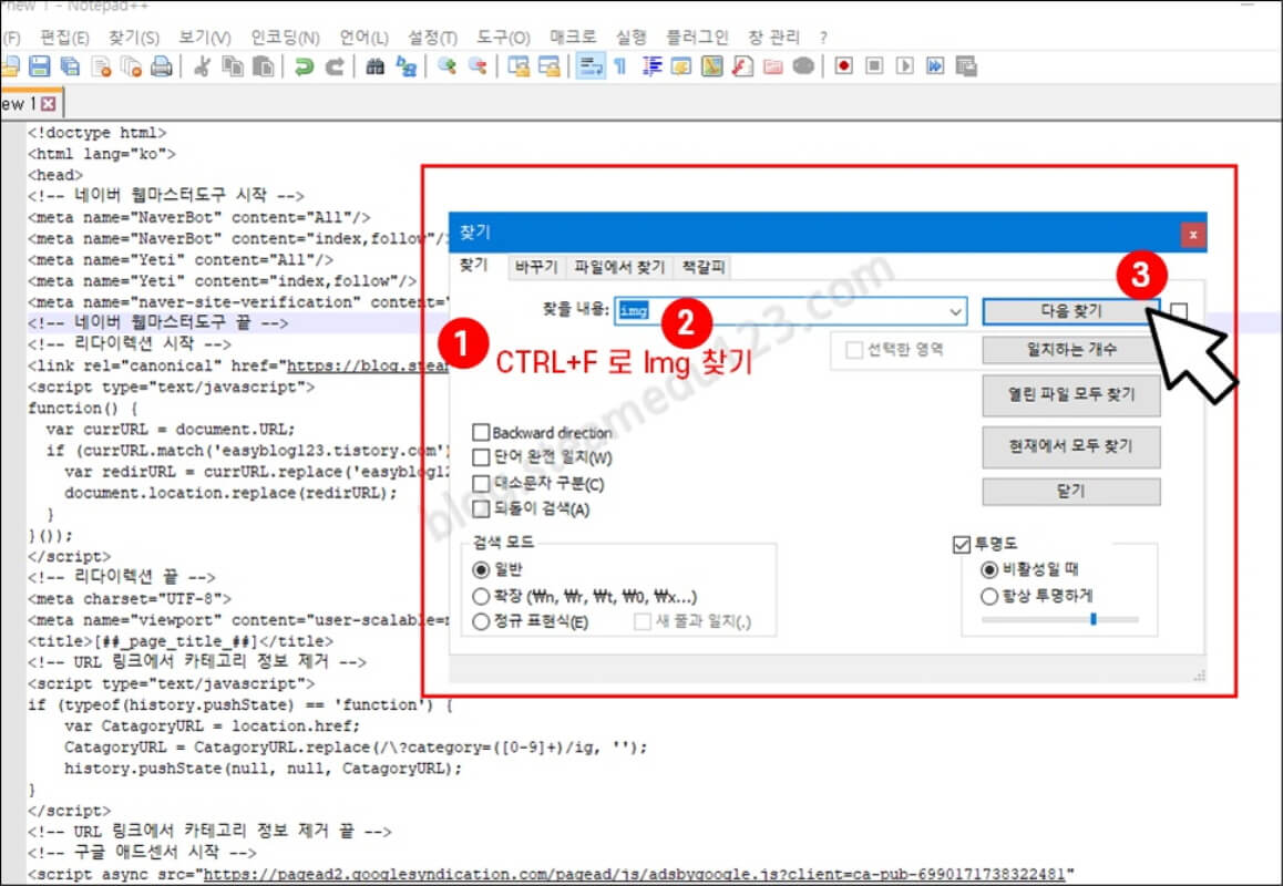 (3) 노트패드++에서 CTRL+F로 img로 검색합니다.