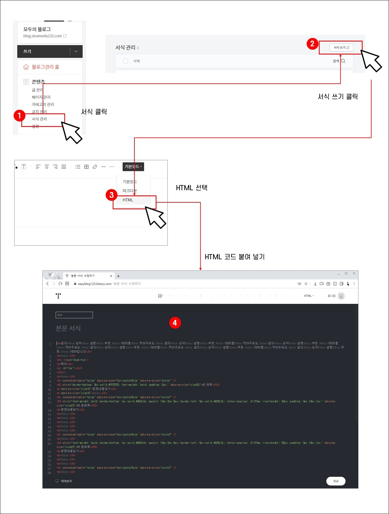 티스토리 서식 HTML 코드 붙여 넣기